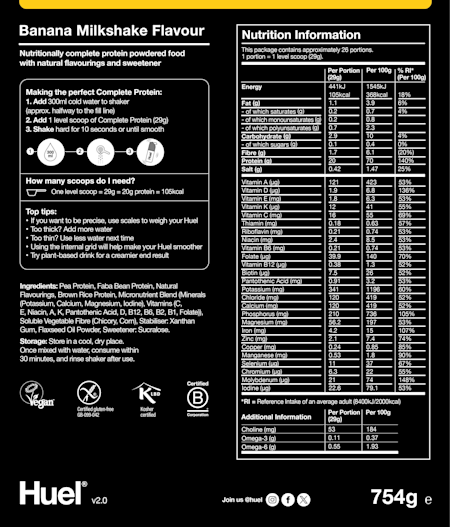 Huel Complete Protein Powder, 26 Servings, Banana Milkshake Flavour, 20g