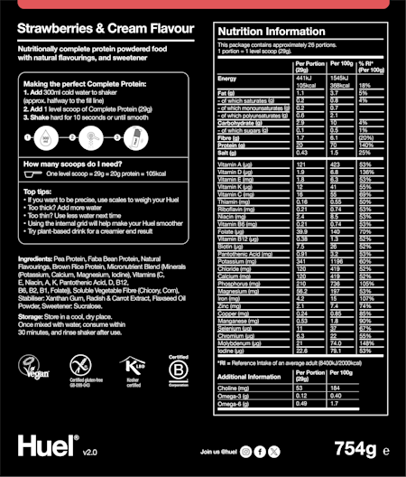 Huel Complete Protein Powder, 26 Servings, Strawberries & Cream Flavour, 20g