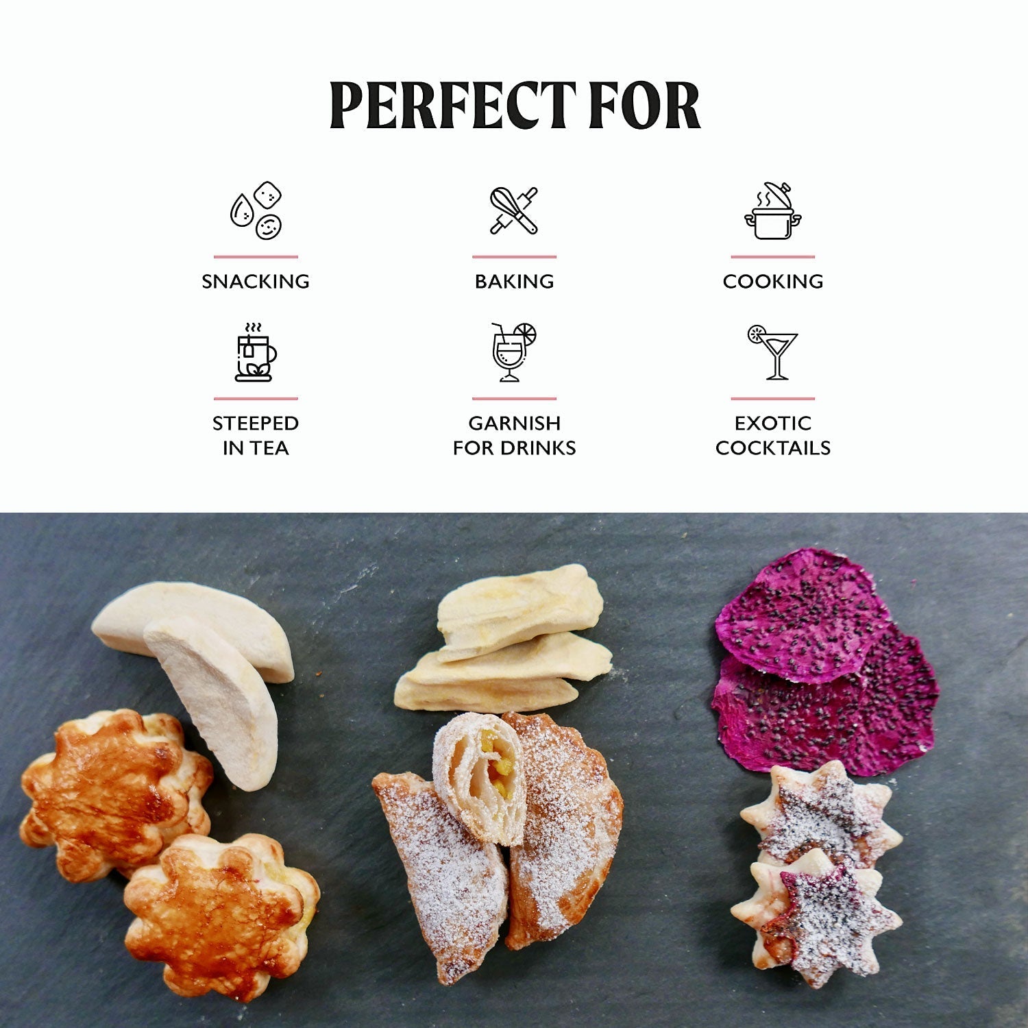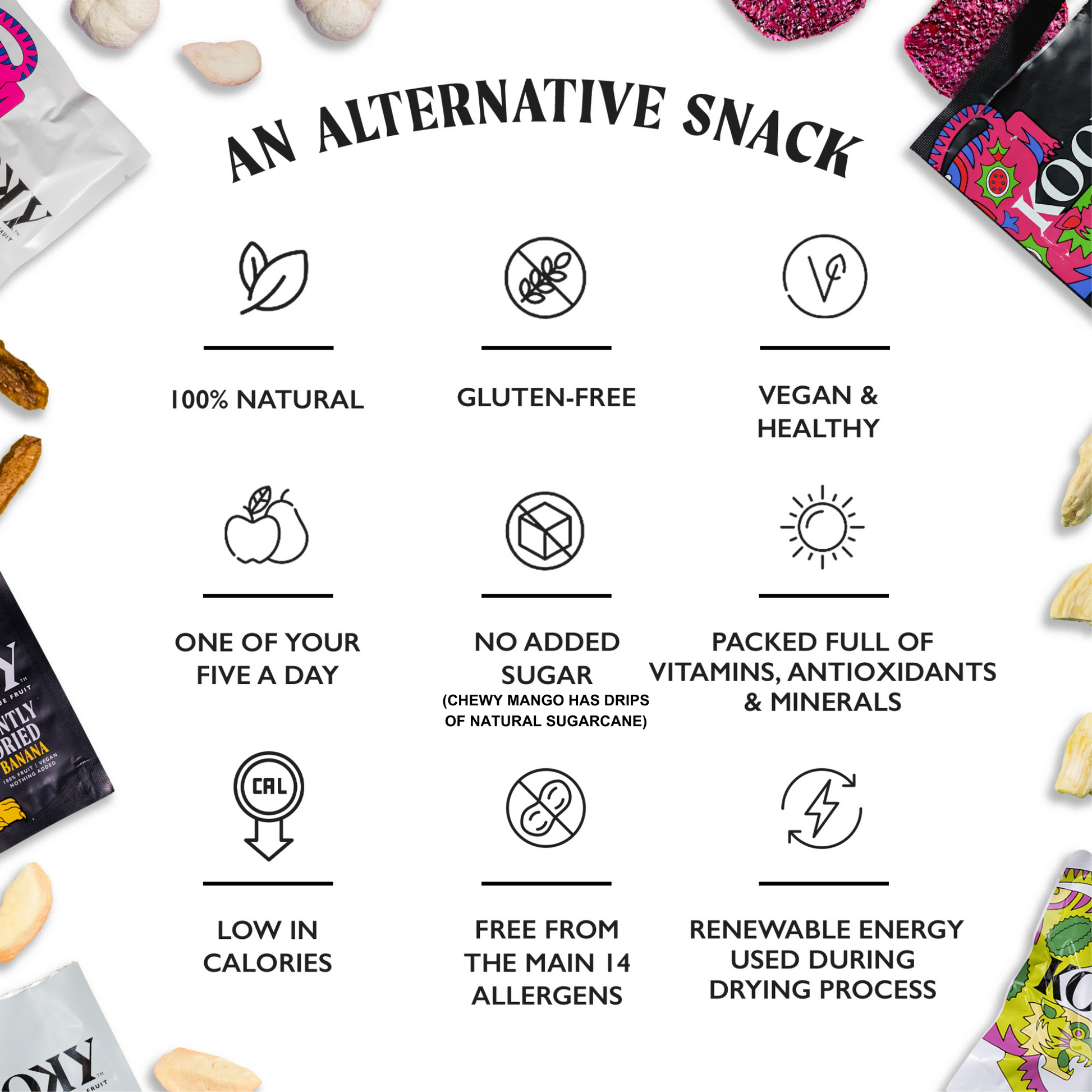 Kooky dried fruits showcase distinctly tropical taste profiles and exciting textures. Feast your senses on nutrient-dense snacks packed full of flavour and natural goodness