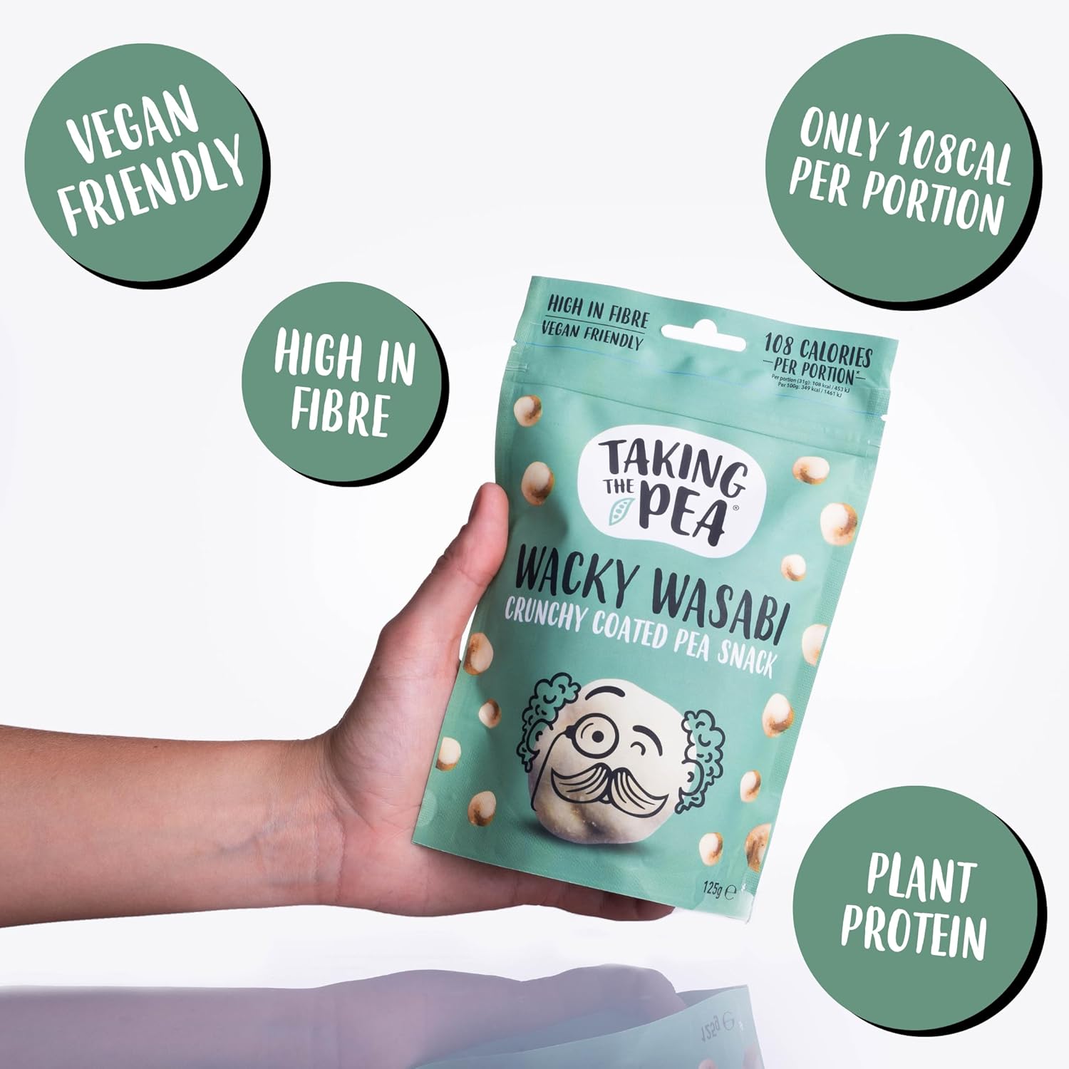 Honestly, what is a pea without wasabi? Mr. Wasabi: The daddy of not-so-cool, but guaranteed he'll blow your mind... We've taken the humble marrowfat pea and turned it into a deliciously crunchy, flavourful snack that you won't want to put down. These wasabi coated, crunchy balls of goodness are vegan friendly, a great source of plant-based protein and less than 100kcal per serve.
