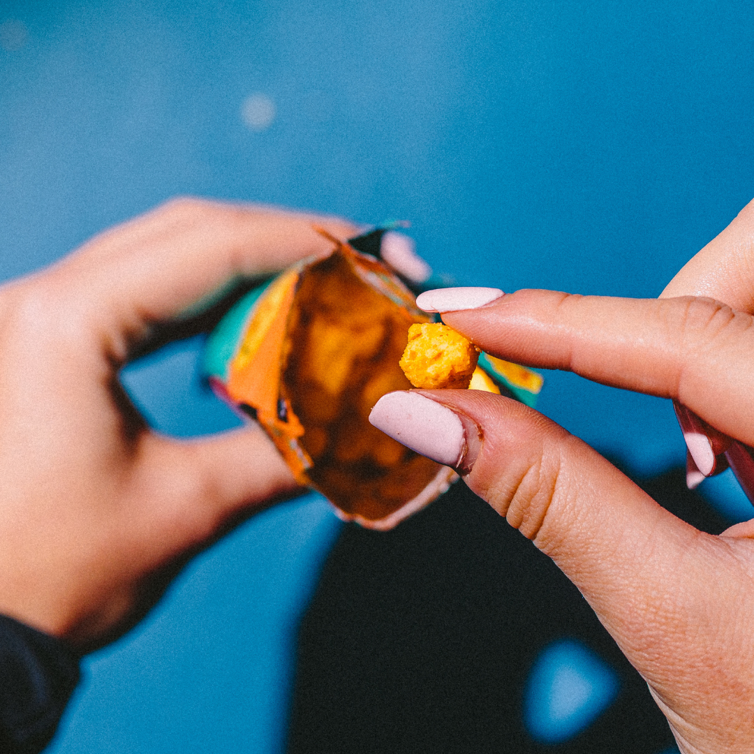Salty and very, very orange. Kind of like Donald Trump. But a much MUCH nicer & 100% natural version. Cheesies have taken Red Leicester and made it crunchy and fridge-free. Yeah we know, it's great.